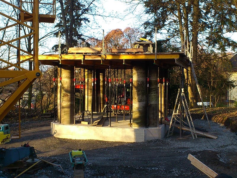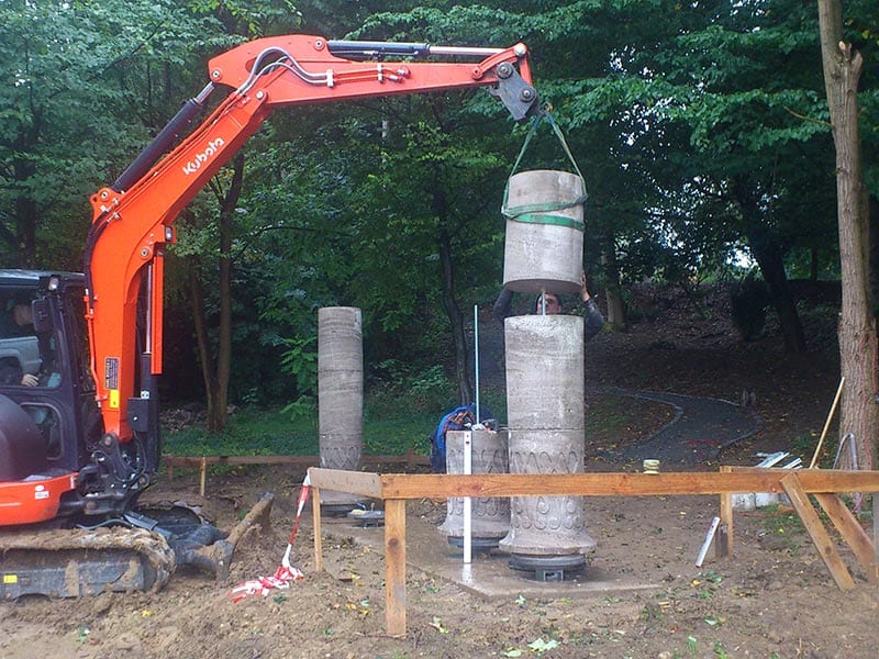Ein außergewöhnliches Bauprojekt aus unserem Portfolio im Bereich Außenanlagen: der Neubau eines freistehenden Turmpavillons in massiver Bauweise am Buddhistischen Zentrum Waldbröl. Vom runden Stahlbetonfundament über die aufwändige mehrstöckige Schalung bis zur fertigen Turmkonstruktion mit Pagodendach – jede Phase wurde handwerklich präzise ausgeführt. Dieses Projekt zeigt, dass wir auch anspruchsvollste Sonderkonstruktionen mit außergewöhnlichen architektonischen Anforderungen sicher und zuverlässig realisieren.